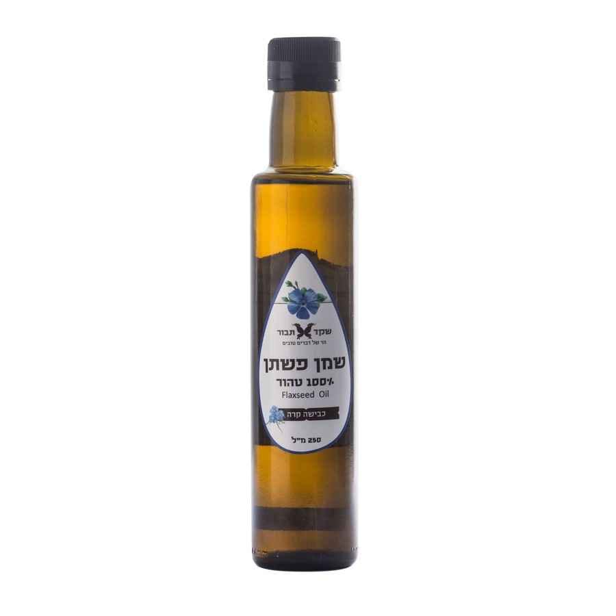 שמן פשתן בכבישה קרה "שקד תבור". 250 מל'