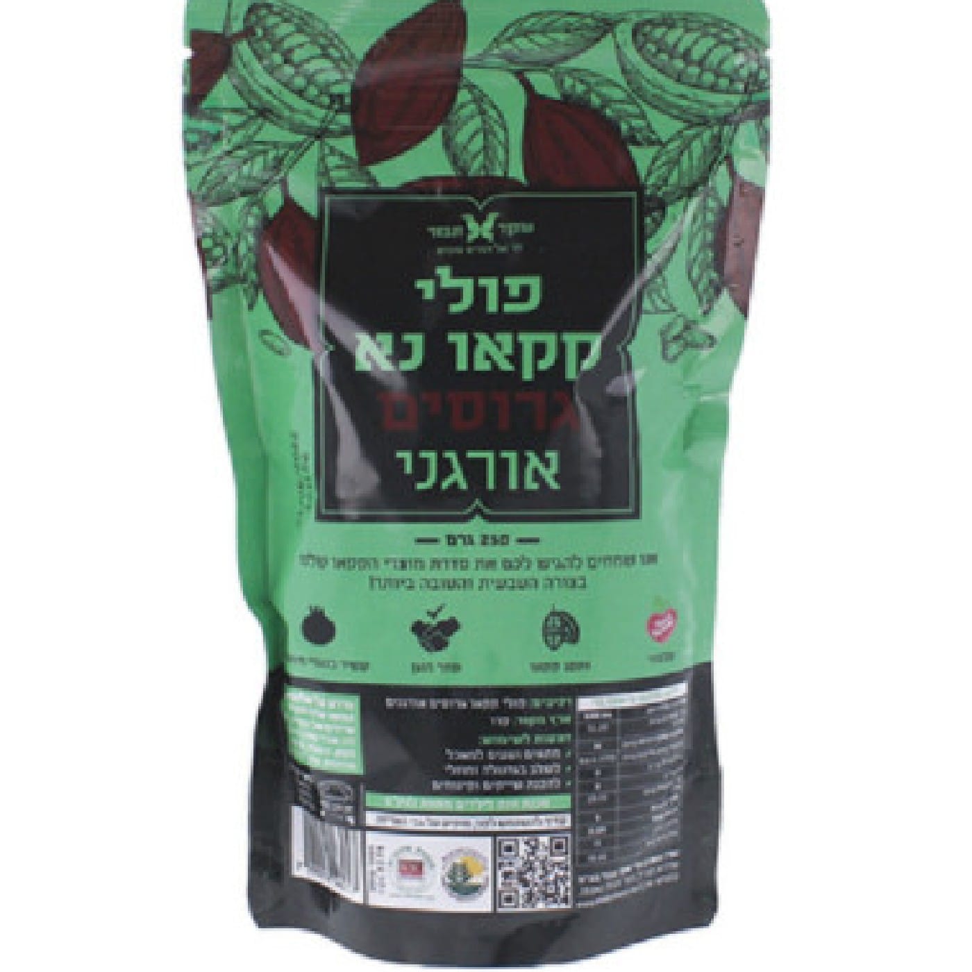 פולי קקאו נא גרוסים אורגניים, מארז 250 גר' "שקד תבור"