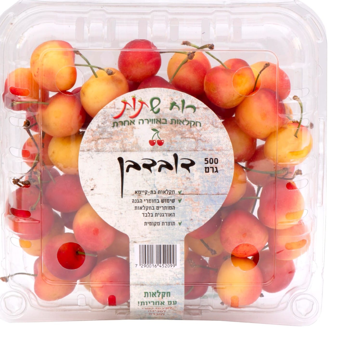 דובדבן לבן בשילוב אדום. טעים מאד. זן רגיש ביותר. כ-500 ג'.