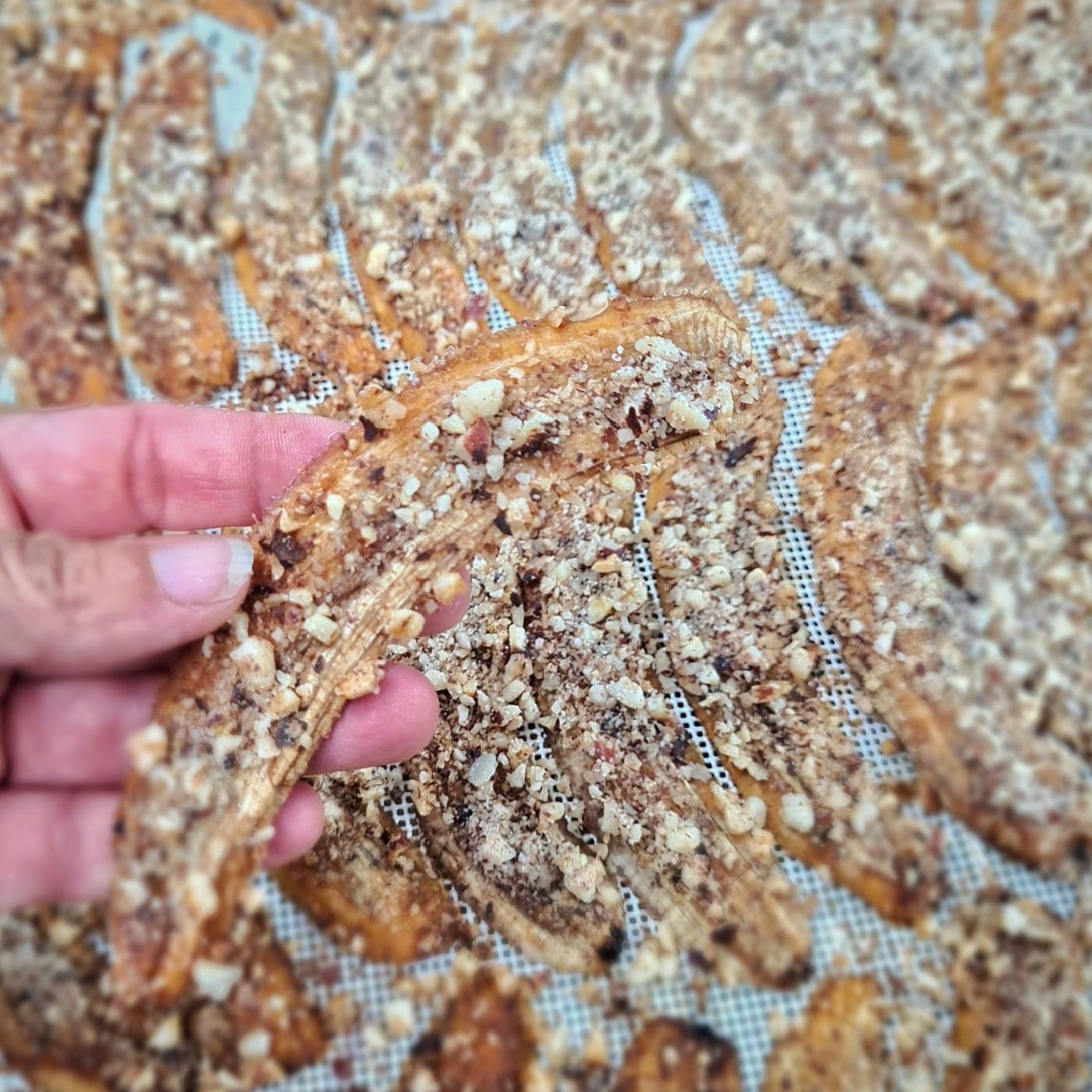 בננה מיובשת טבעית מצופה שברי אגוז לוז 90 ג'