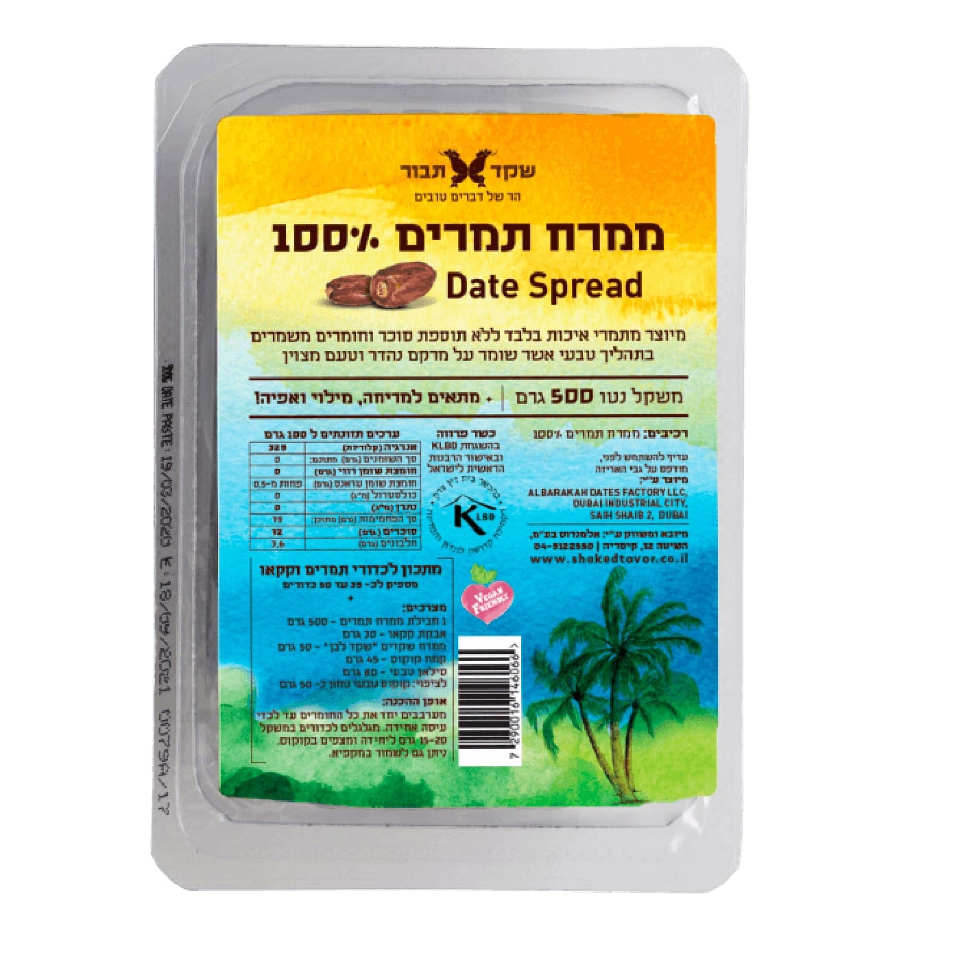 תוקף 19/10. 500 ג'. ללא תוספת סוכר וחומרים משמרים, בתהליך טבעי אשר שומר על מרקם מצוין וטעם נהדר.