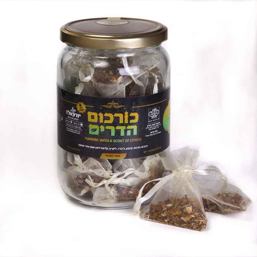 צנצנת 20 שקיקים של חליטת כורכום הדרים החליטה המושלמת לרגעי החורף הקרירים. החליטה מורכבת משילוב ארומתי של תבלינים ופירות הדר הנפוצים יותר בתקופת החורף.